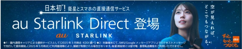 - RCS技術によりau Starlink Directで衛星通信が可能に